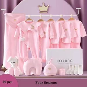 Welcome your little one with our 20-Piece Newborn Baby Clothing Sets in a Gift Box. Each piece is crafted for optimal comfort and softness, ensuring your baby stays cozy and stylish. The set includes essential clothing items designed for easy dressing and all-day comfort, making it the perfect gift for new parents. Beautifully packaged in a gift box, this set is a thoughtful choice for baby showers or welcoming a newborn."