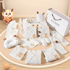 Wrap your newborn in comfort with our 26-Piece Newborn Romper Gift Box Set, made of 100% cotton for breathable softness. Each romper is designed to keep your baby cozy and comfortable, making this set a perfect choice for new parents. Ideal for baby showers or as a thoughtful welcome gift, this set offers a variety of adorable, easy-to-wear outfits that ensure your little one stays snug all day long."