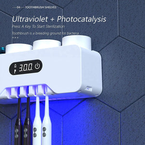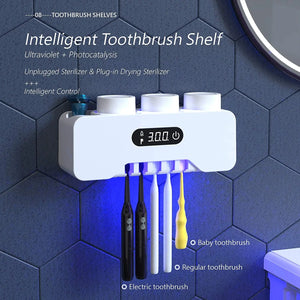 Clean and Healthy360-degree working without blind angle can ensure to clean your toothbrush and cup at the same time. | Dryer DesignEquipped with a built-in dryer design, the toothbrush holder can accelerate toothbrush water evaporation, keep your toothbrush and cup dry, clean and healthy. | Perfect for FamilyA set of products contains 3 cups, 5 dust-free toothbrush slots(suitable for electric toothbrush and manual toothbrush)and 1 razor slot which is perfect for family daily use. | NON-NAIL DesignEasy installation with 3M stickers and suitable for variety of walls. High bearing weight is up to 15lb. |