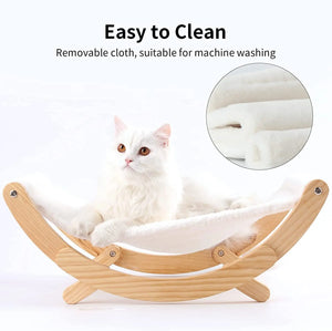 Attractive, Pet LoveBoth dog and cat love the chair bed, because its sleeping surface that suspends between posts can respond to their body shape, hugging them and providing extra warmth. Which is much more supportive and comfortable than an overstuffed cushion. | 2 In 1 ChairWith the anti-sway woodblock, it can easily switch between cat bed and cat cradle for cat multiple daily use cases. A new moon cat hammock would be a great gift for your cat. | Portable To CarryUnlike a window hammock, it is not only comfortable but also convenient and portable to carry wherever you want. It also complements the best of home decor, you can place it anywhere in your home according to your needs. |