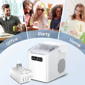 🛒【Space-Saving Design】: Despite its compact size, this ice maker fits seamlessly on most countertops, keeping your living space neat and organized. Its large-capacity design ensures a plentiful ice supply without sacrificing space. Additionally, its built-in handle facilitates effortless mobility, whether you're at home, in the office, or enjoying outdoor gatherings.