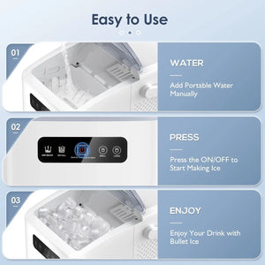 - 🛒【Versatile Ice Options】: Crafted precisely, this ice maker produces chic, bullet-shaped ice cubes that are both sleek and non-sticking. Perfect for elevating the enjoyment of beverages like iced coffee, refreshing drinks, frozen treats, and even for practical uses such as first aid.