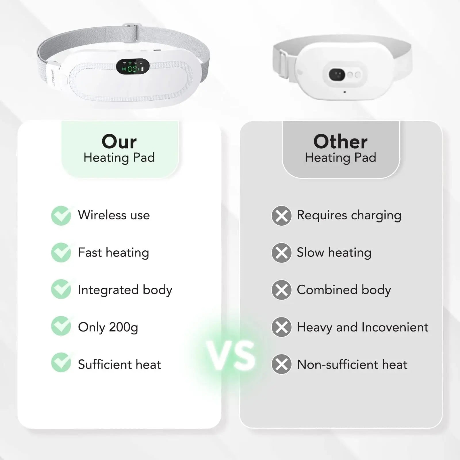 【Widely Application】Made of high-quality soft fabric, this wearable heating pad is light, breathable, and comfortable against the skin. The high elastic belt can quickly adjust the waistband, making it suitable for all waist circumferences. Whether you are suffering from unbearable menstrual pain, frequent back pain, or abdominal chills and distending pain, this period heating pad is designed to warm the palace, stomach, belly, and protect the waist.